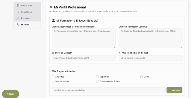 Gestiona el perfil de tus pacientes, terapeutas y supervisores. Puedes crear fichas clínicas y fichas de desarrollo profesional